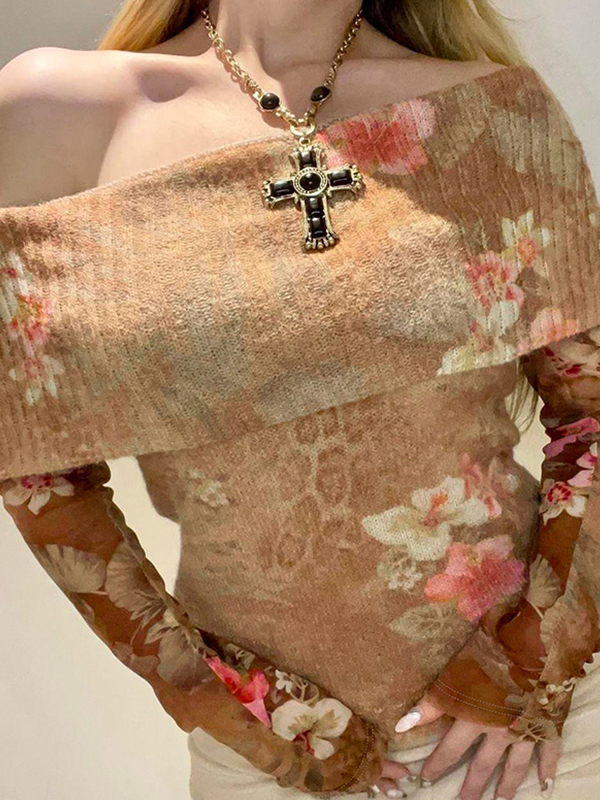 Long Sleeve Knits Floral Neckline