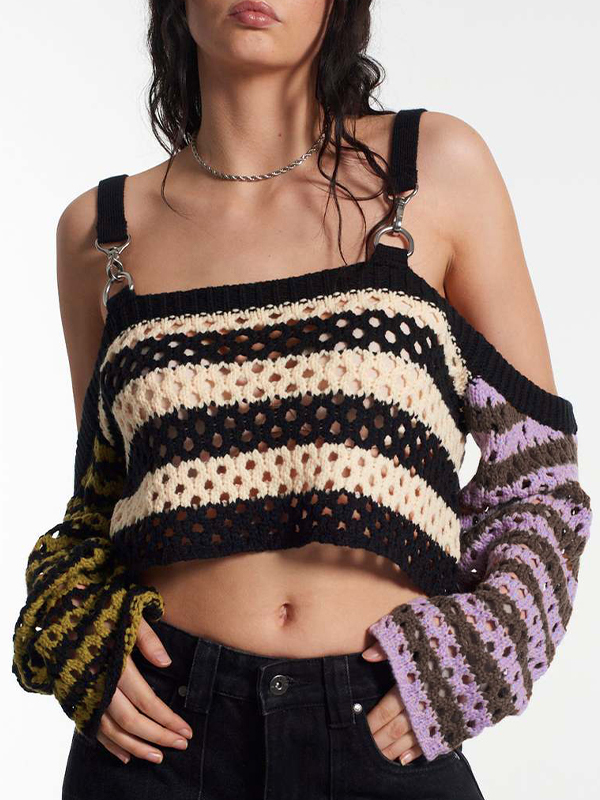 Contrast Color Halter Two Piece Long Sleeve Knit