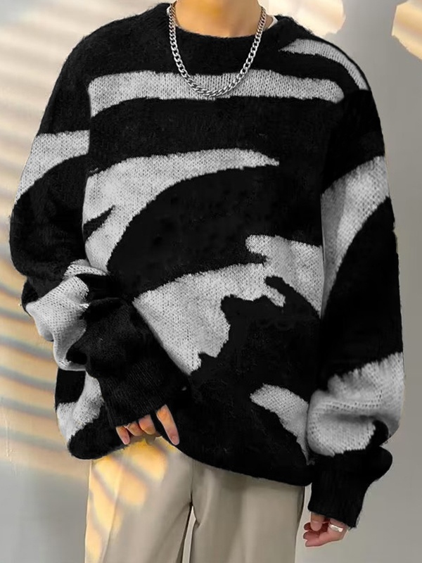 Men’s Contrast Color Irregular Stripe Sweater