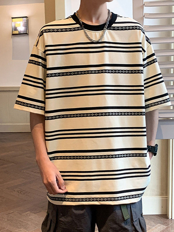 Men’s Street Stripe Print Oversized Short Sleeve Tee