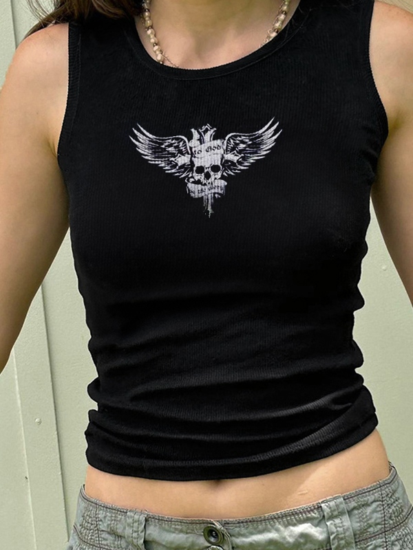 Skull Print Ribbed Tank Top