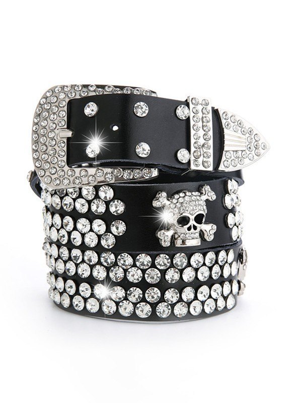 Rhinestone Skull Buckle Belt