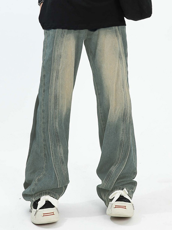Men’s Vintage Wash Splice Loose Jeans
