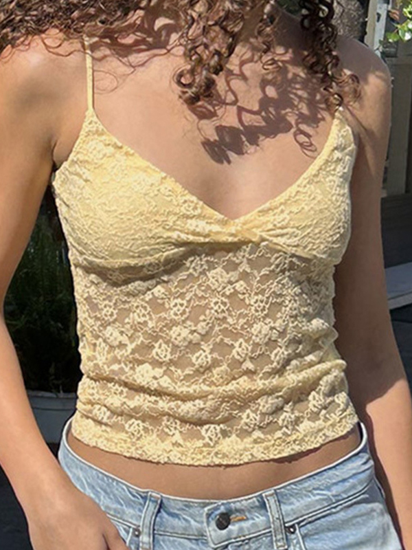 V-Neck Lace Cut-Out Slimming Cami Top