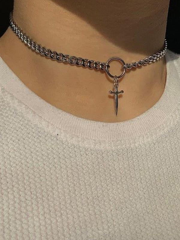 Men’s Cuban Chain Ring Splice Dagger Pendant Necklace