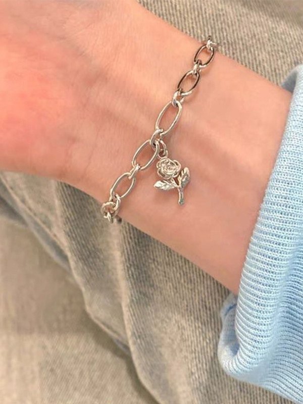 Floral Pendant Link Chain Bracelet