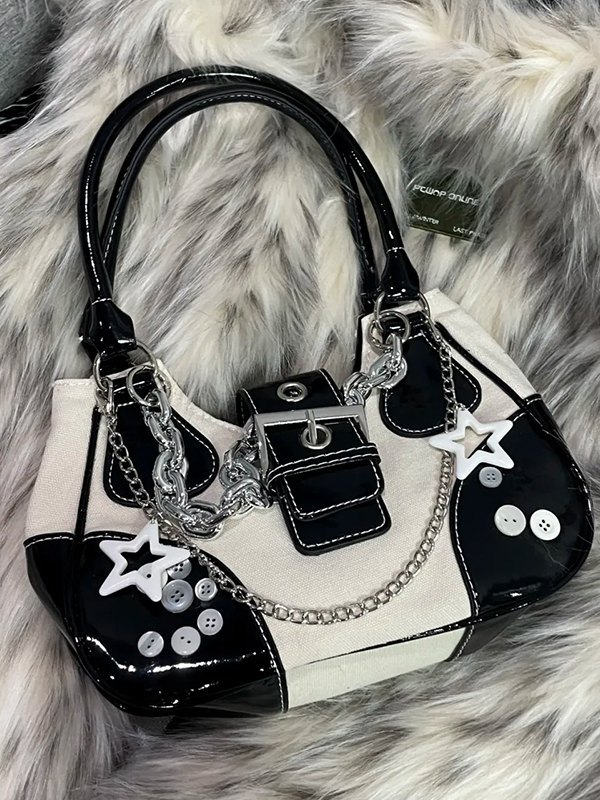 Star Chain Embellish Patchwork Buckled Shoulder Bag