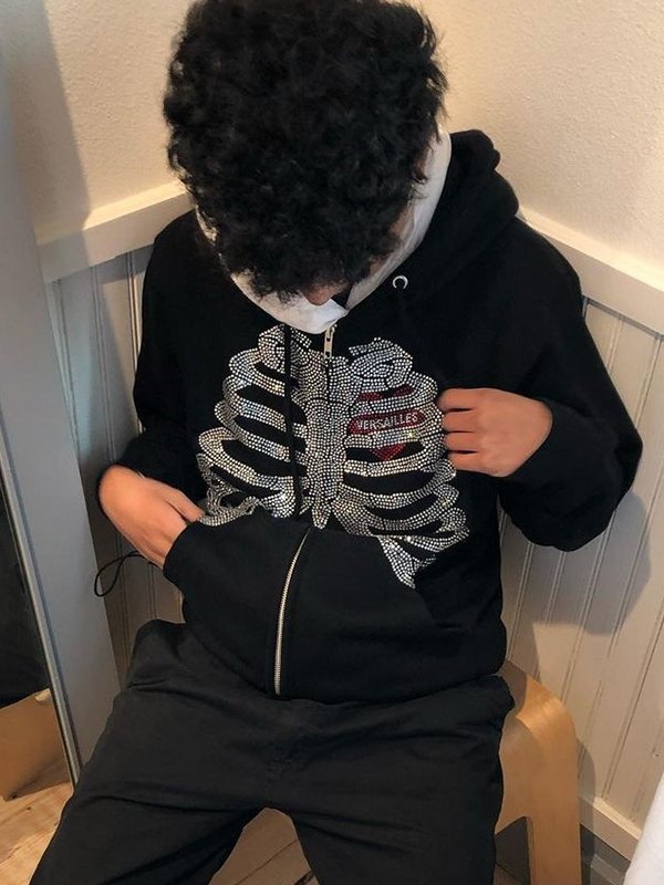 Men’s Halloween Rhinestone Skull Zip Up Hoodie