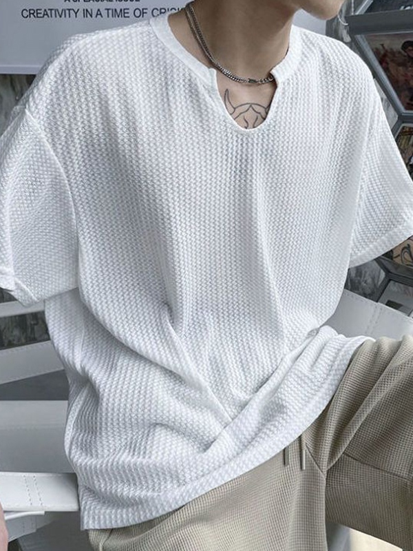 Men’s Solid Mesh Notched Neck Short Sleeve Tee