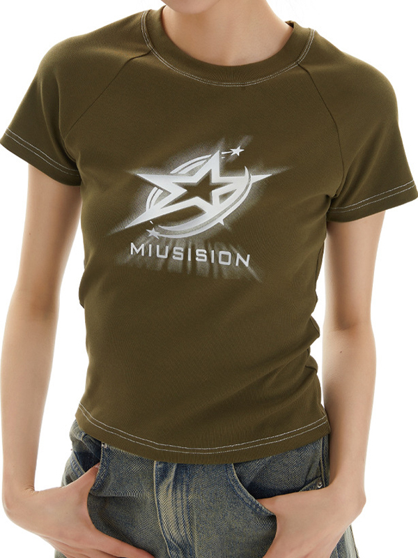 Retro Star Raglan Sleeve Cropped Top