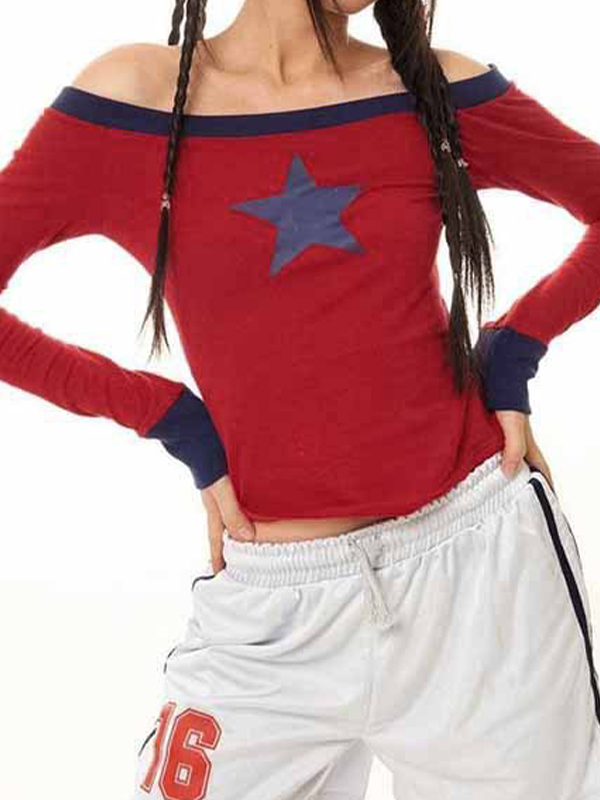 One Shoulder Star Long Sleeve Tee