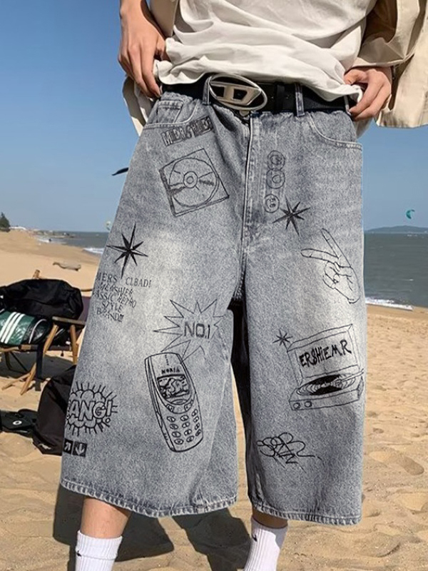 Men’s Vintage Graffiti Print Shorts