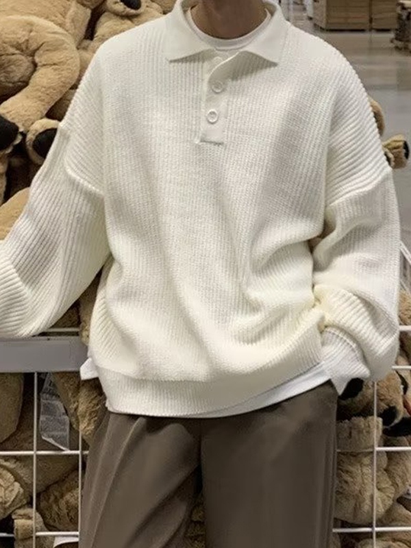 Men’s Solid Lapel Neck Knit Sweatshirt