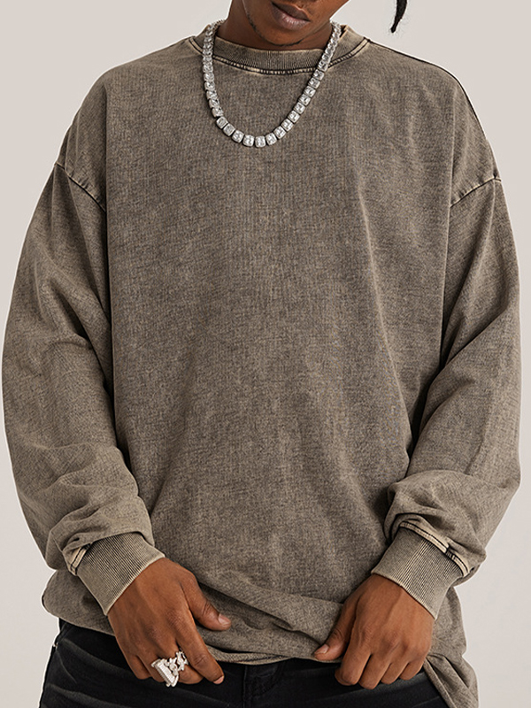 Men’s Solid Color Washed Distressed Thin Sweatshirt