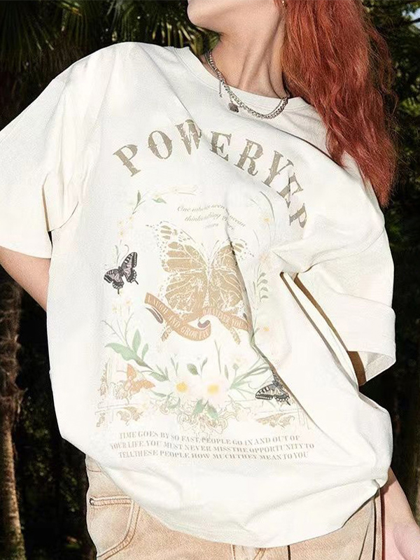 Vintage Butterfly Print Oversized Short Sleeve Tee