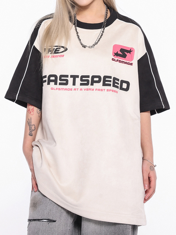 Motorcycle Unisex Spliced Raglan Sleeve Oversized Short Sleeve Tee