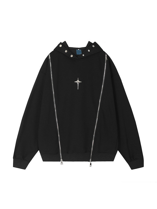 Men’s Double Zipper Metal Button Oversized Hoodie