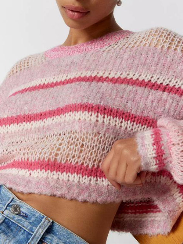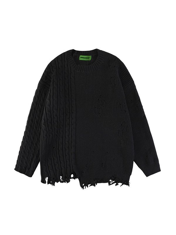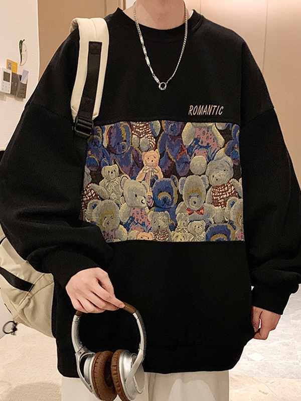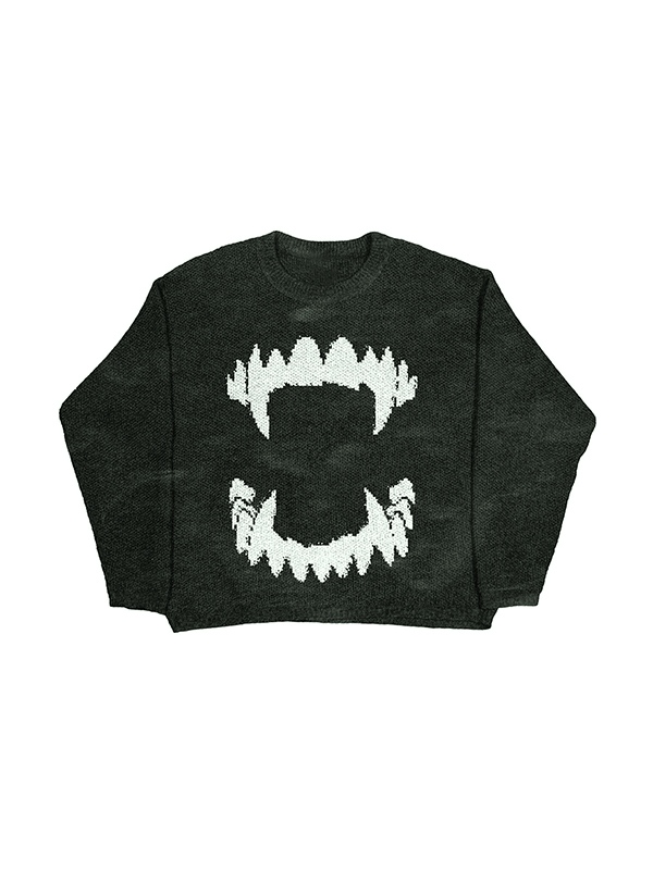 All Over Cartoon Jacquard Crew Neck Knit Sweater