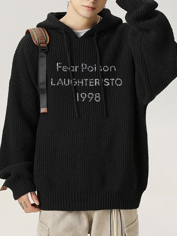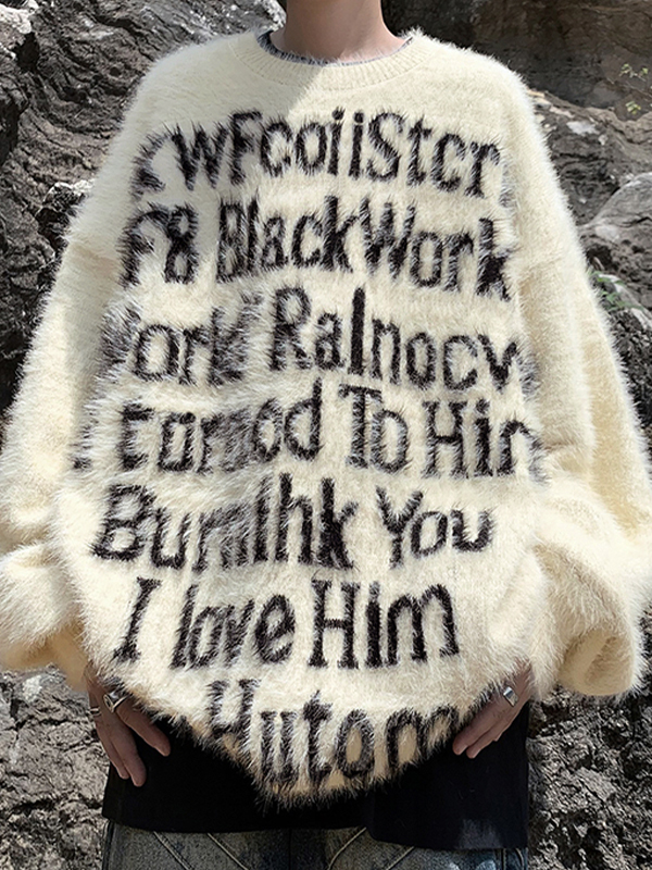 Men’s Letter Jacquard Fuzzy Sweater