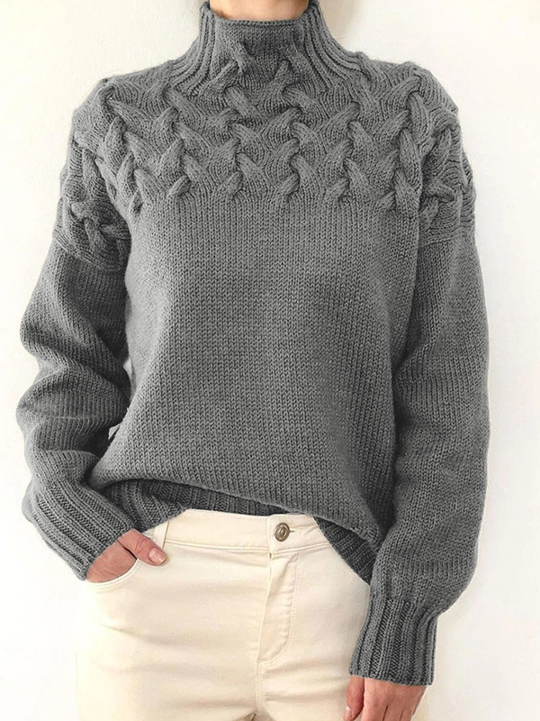 Solid Cable Knit Splice Turtleneck Sweater