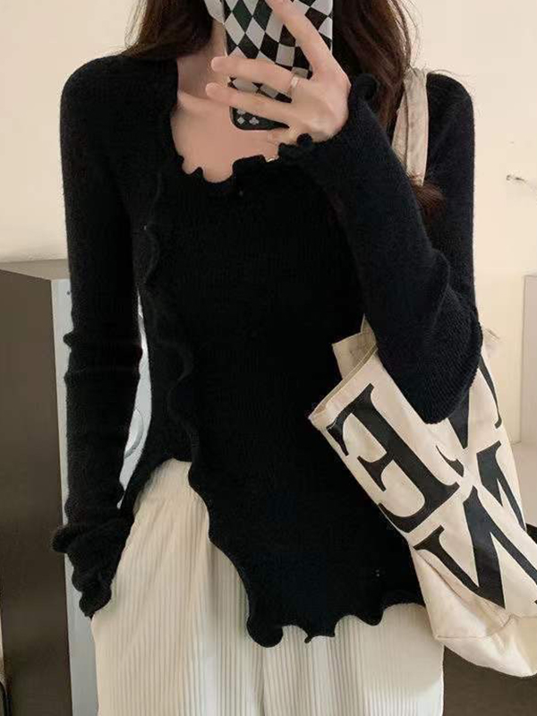 Irregular design ruffled hem sweater