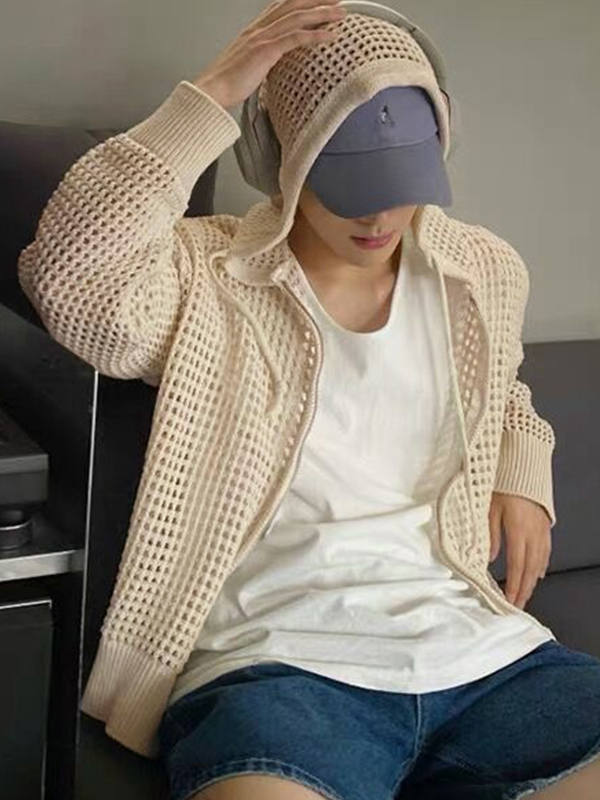 Men’s Cutout Zip Up Knit Oversized Hoodie