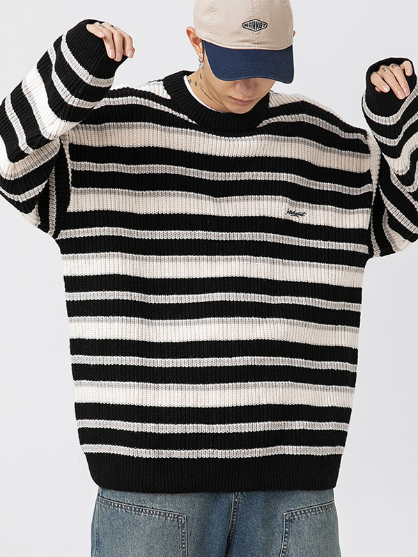 Retro Contrasting Japanese Round Neck Sweater