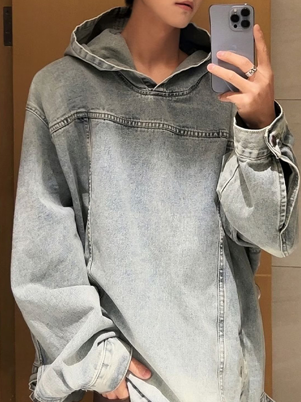 Men’s Washed Vintage Denim Oversized Hoodie