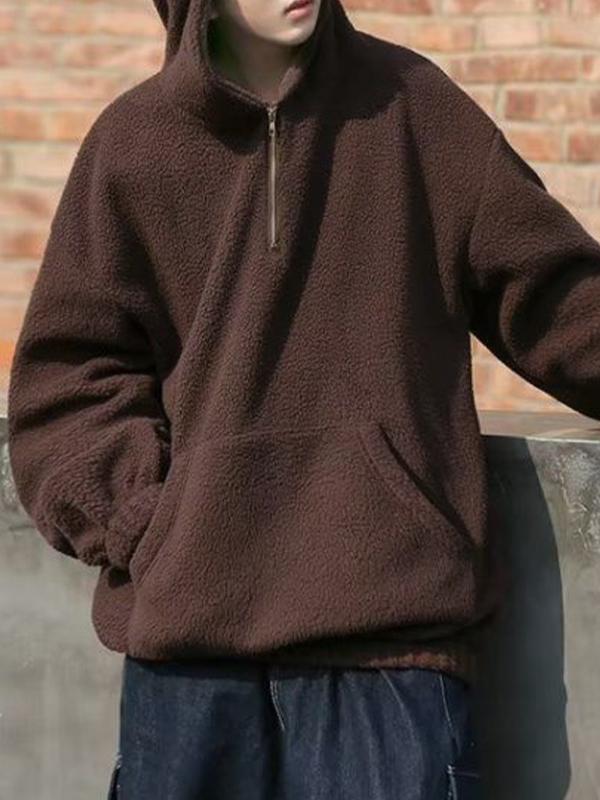 Men’s Solid Lambswool Half Zip Oversized Hoodie