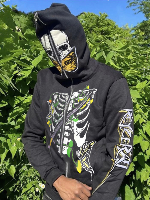 Men’s Skull Skeleton Print Oversized Hoodie