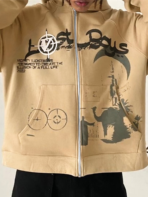 Men’s Camel Print Splice Oversized Hoodie