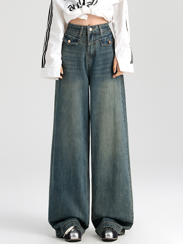 Wide Leg Draping With Pocket Design Boyfriend Jeans
