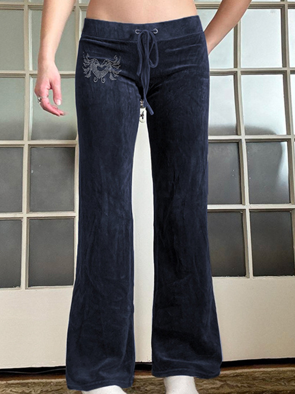 Solid Drawstring Stacked Pants