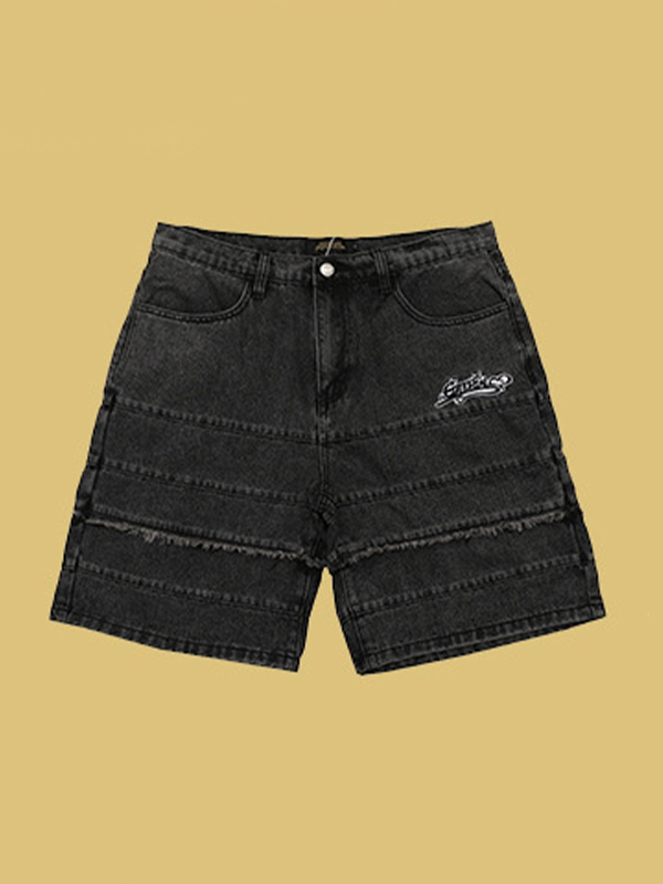Men’s Letter Embroidery Casual Denim Shorts