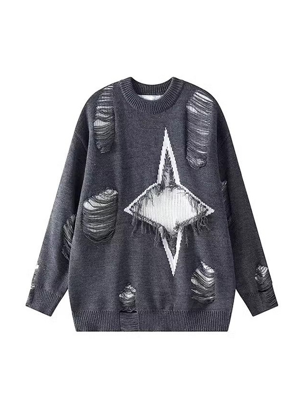 Men’s Frayed Star Tattered Design Sweater