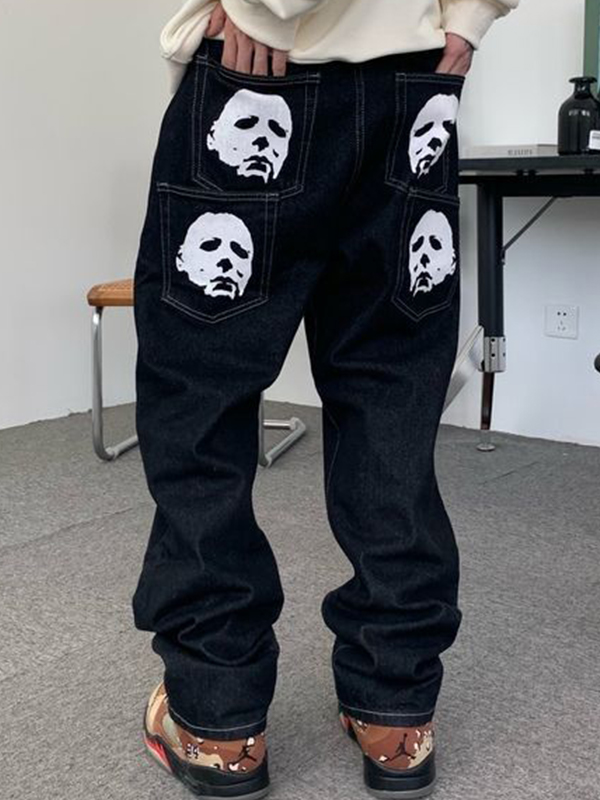 Men’s Bat Print Straight Leg Jeans