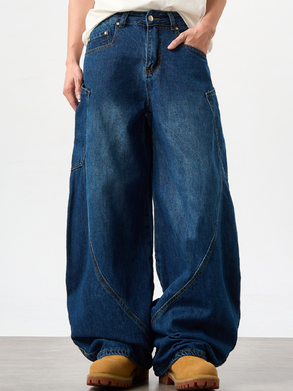 Retro Washed Distressed Multiple Pockets Cargo Jeans