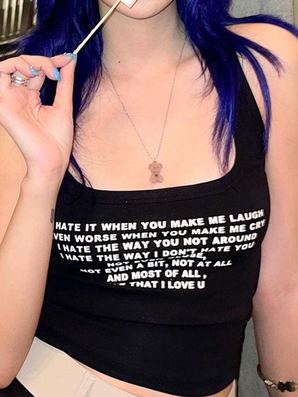 Letter Print Navel Bare Slim Fit Short Tank Top