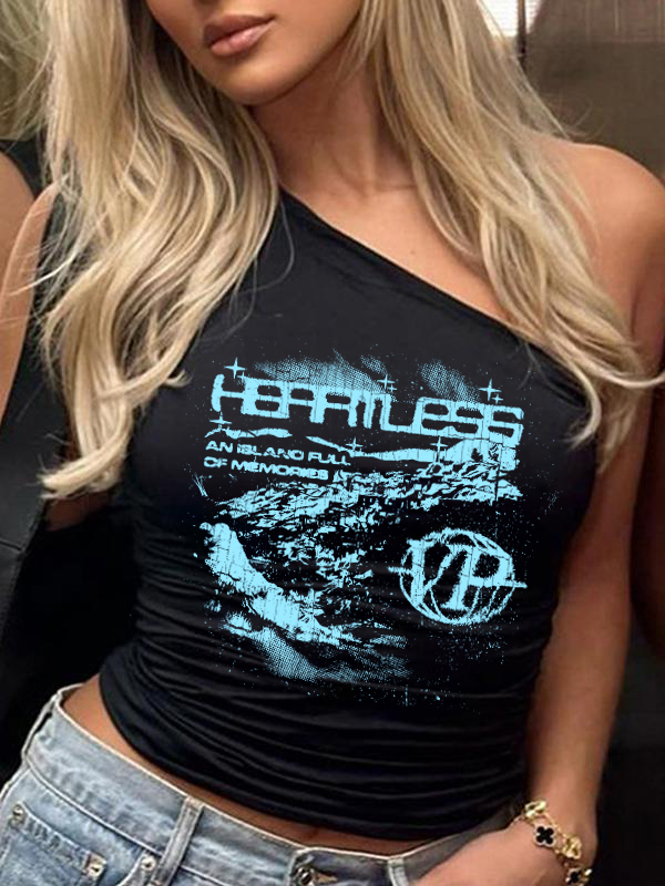 One Shoulder Contrast Print Slim Fit Tank Top
