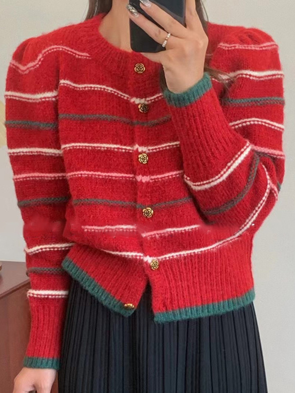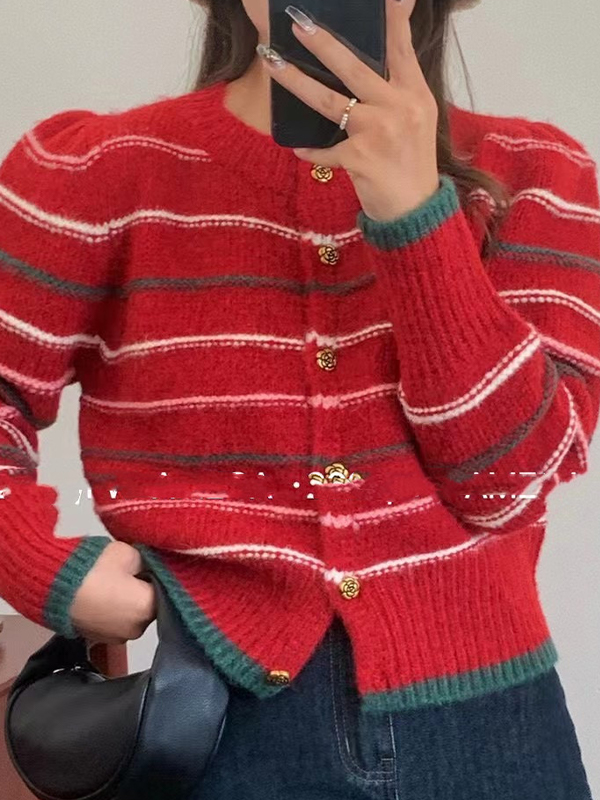 Be the first to review “Contrast Color Striped Short Knit Cardigan”