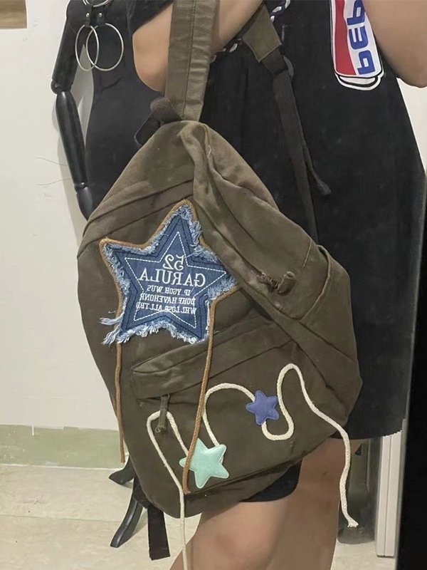 Denim Star Embroidery Decor Canvas Backpack