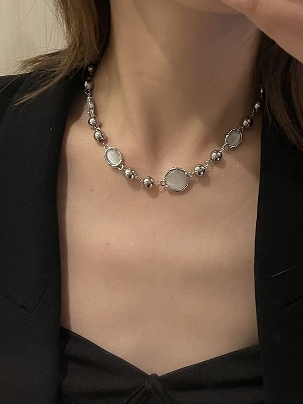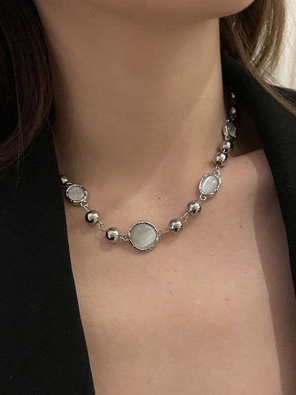 Grunge Faux Gem Decor Beads Necklace