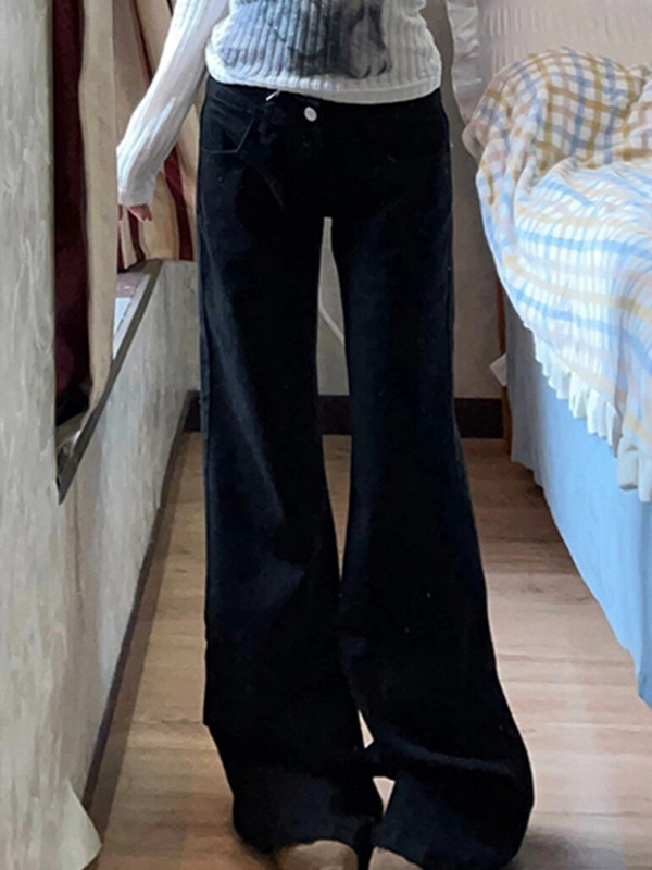 Hot Girl Low Waist Black Wide Legs Flare Jeans