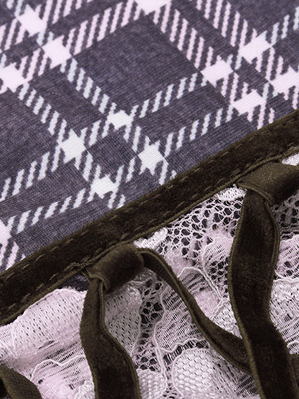 Unique Lace Splice Design: The top features a unique lace splice design, giving it a delicate and girlish touch. This, combined with the vintage plaid print, makes this top a standout piece.