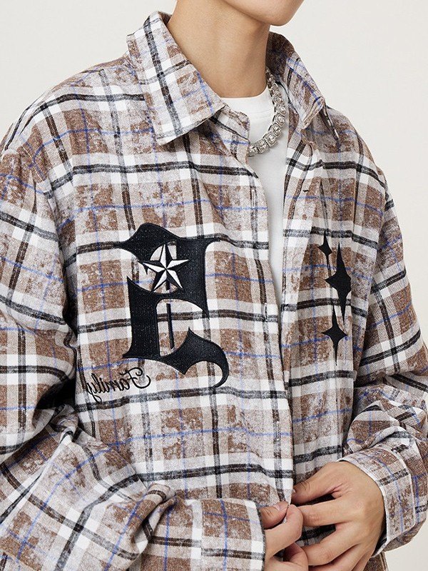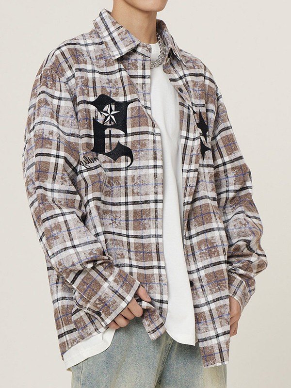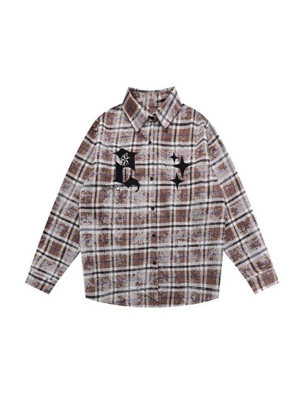 Description: With tie-dye checkered inspired print, these chic city boy shirts have a flattering silhouette, features logo star embroidered to the front, finished with button fasten design.