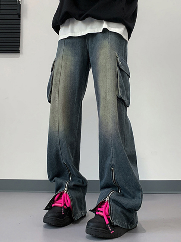 Men’s Flap Pocket Zip Up Slit Cargo Jeans