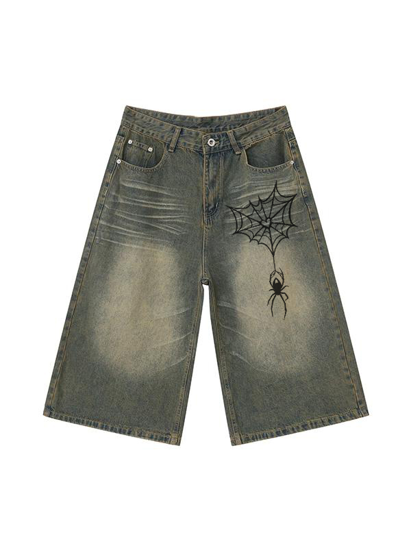 Be the first to review “Men’s Spider Print Loose Casual Denim Shorts”