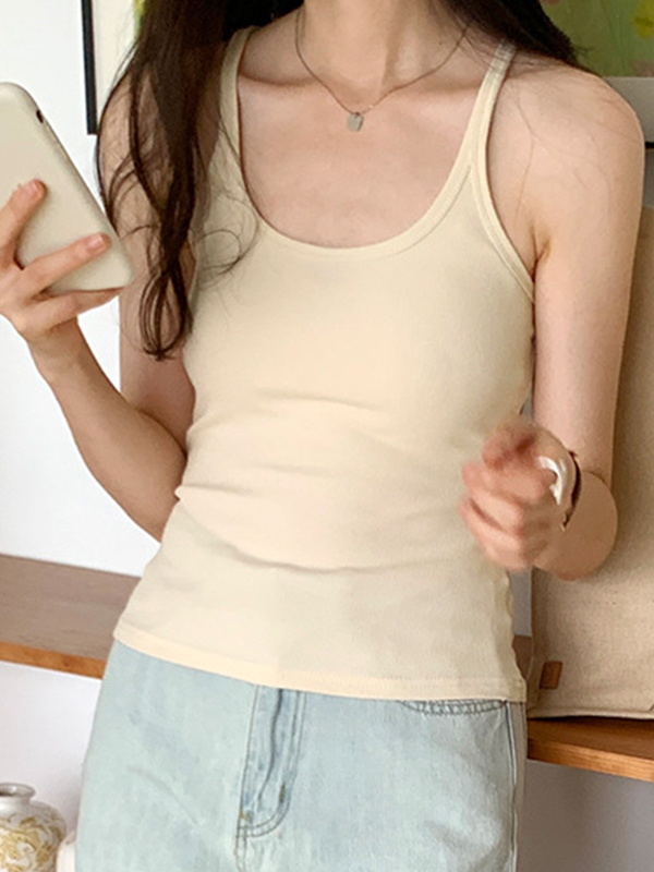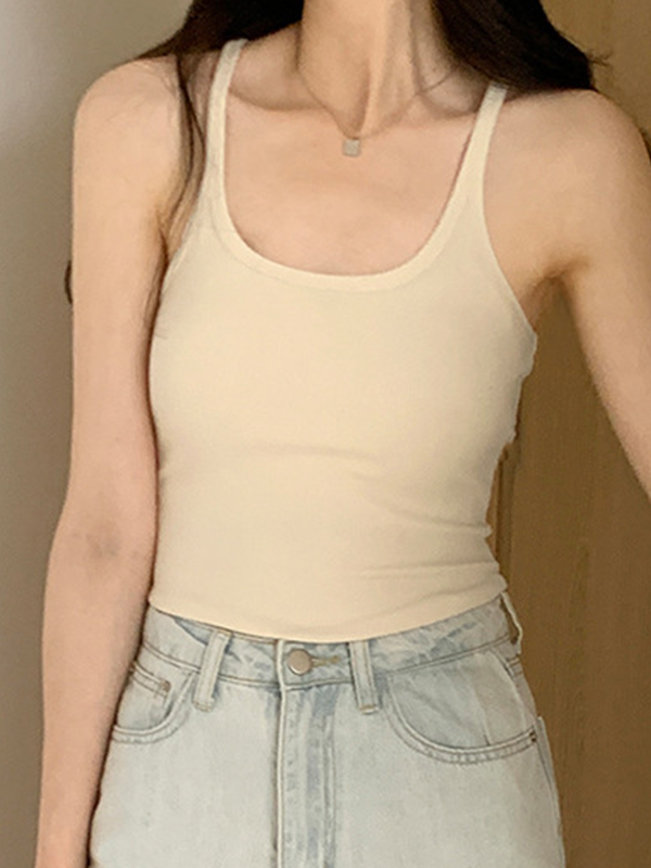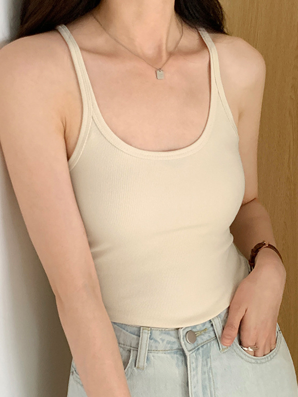 Plain High Elastic Slim Fit Cami Top