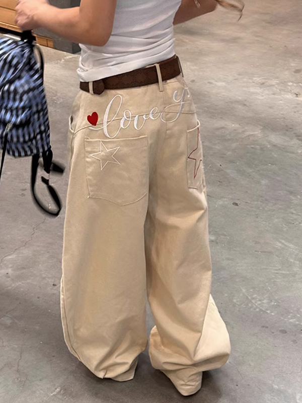 Retro Star Letter Embroidery Boyfriend Jeans