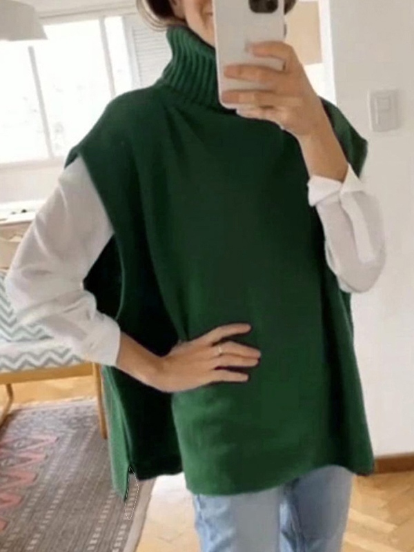 Solid High Neck Loose Sweater Vest